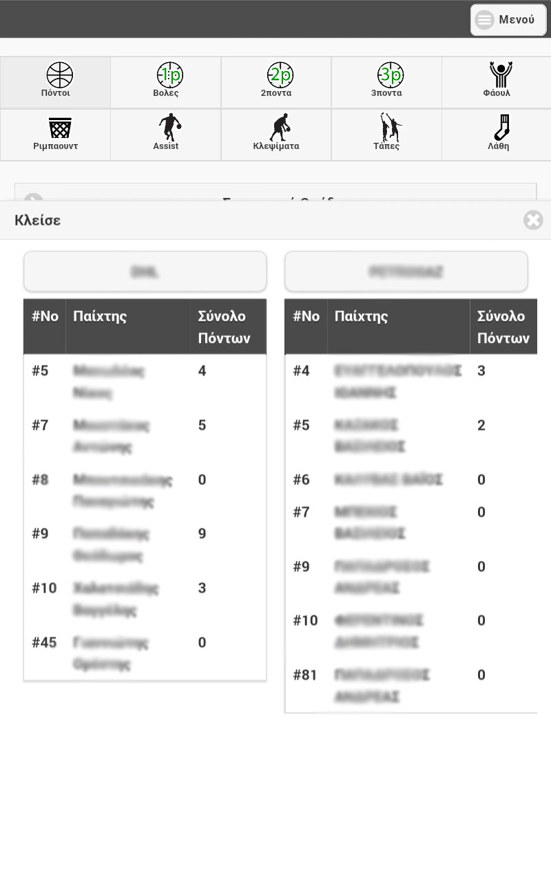 Once the teams, the rosters, the player’s details and the game categories (Championship, Cup, and Friendly Games) are created at basketballstat.com platform then by simple synchronizing the tablet with the database with the use of the button “synchronize” all data is automatically available on your tablet. The only thing you need to do is to create the game you are interested in collecting stats and if you wish to collect stats for the opponent team in order to enhance your scouting database, you need to add the roster of the other team and the uniform number for each player. When the game ends you choose the button “Synchronize” and data is automatically uploaded on the database and stats are being automatically updated, accumulated and presented on the website and the existing tables graphs and charts.