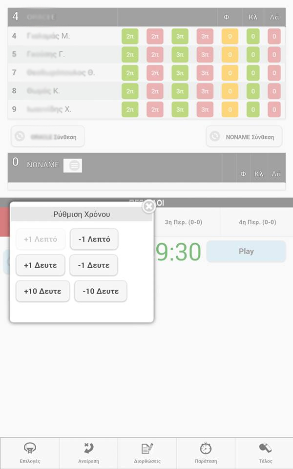 By choosing the button "Time" (left below) we can correct the remaining game time.ADVISE: Correct time at time outs and player changes. Inthisway you record the real time played by each player with 100% accuracy.