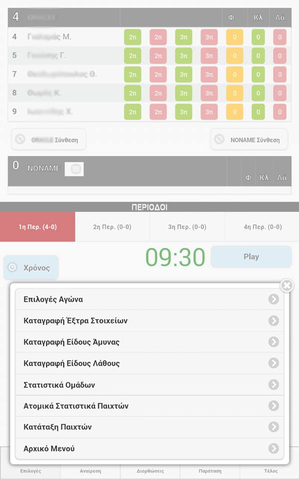 - Add Game (we add the games we like to keep statistics- we have already entered the team details and roster from the administration tool basketballstat.com- Game Selection (We select the game for which we are going to collect statistics)
