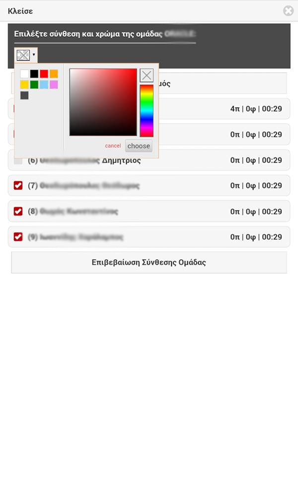 By choosing the button "Line up" we can record the player changes and enter the first line up.From the same option we can set the team colors so that when recording an action you can easily (by the color) find the team you would like to record an action for(optional).