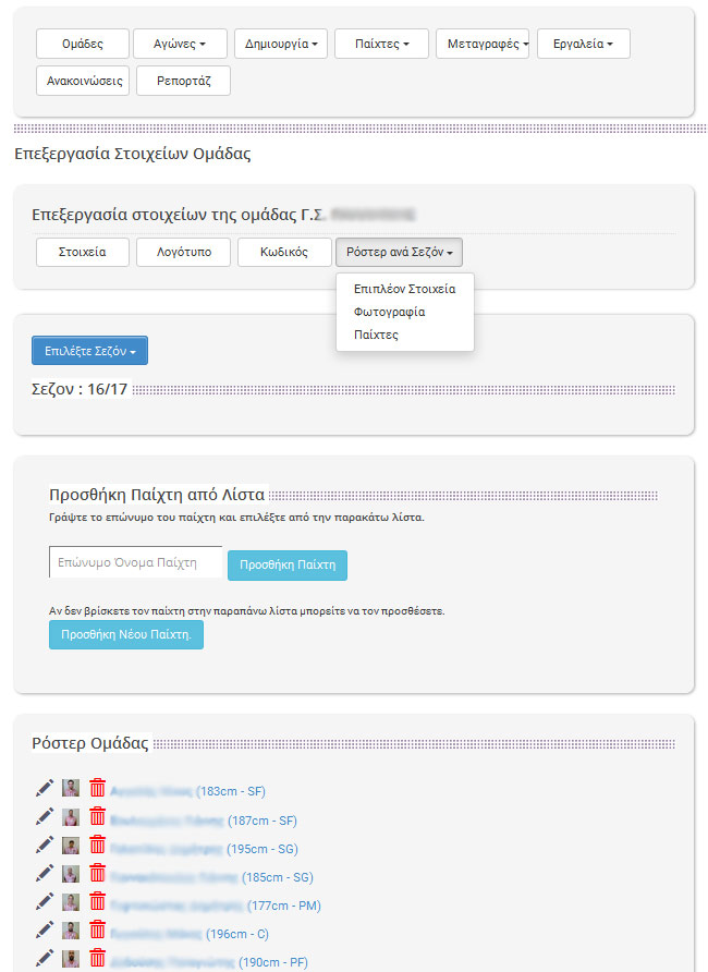 Φωτογραφίες Διαχειριστικού Εργαλείου Διοργάνωσης Μπάσκετ